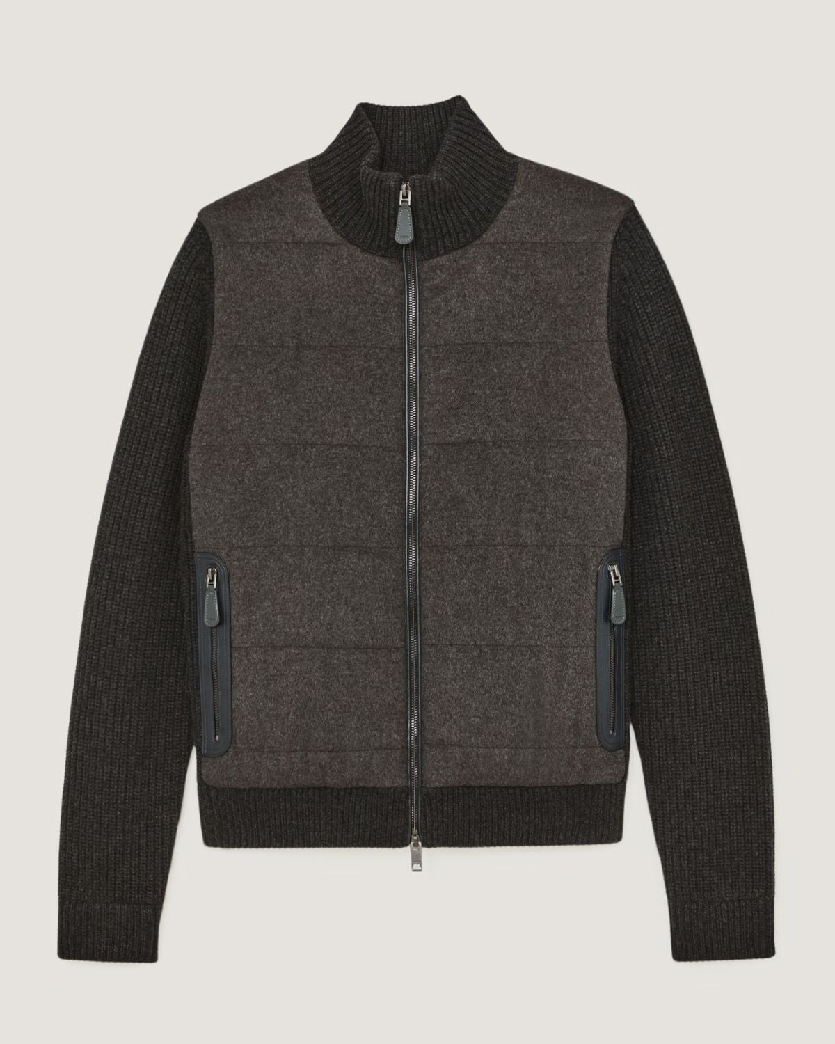 Quilted Cashmere Zip Jacket in Charcoal Grey