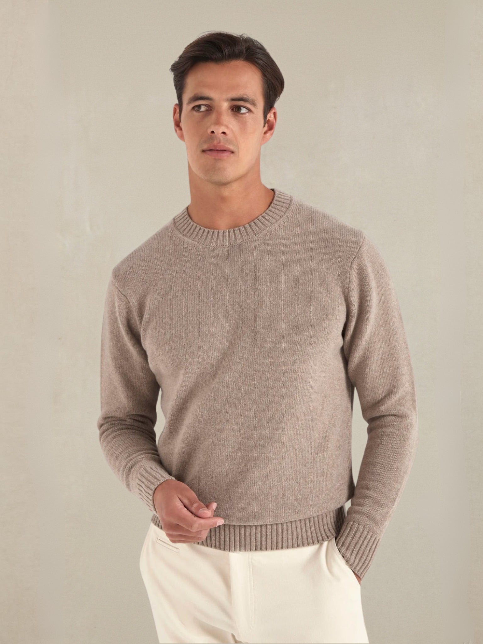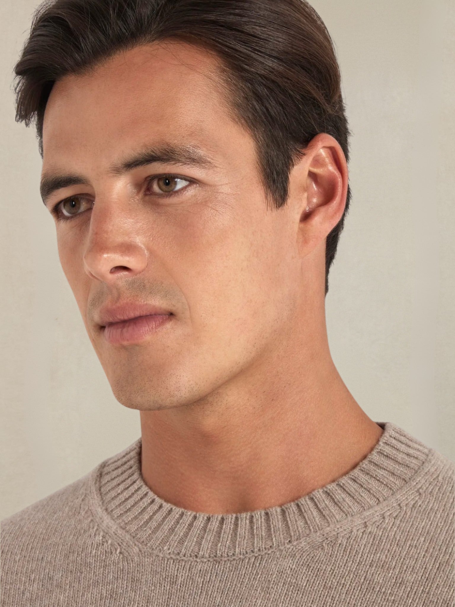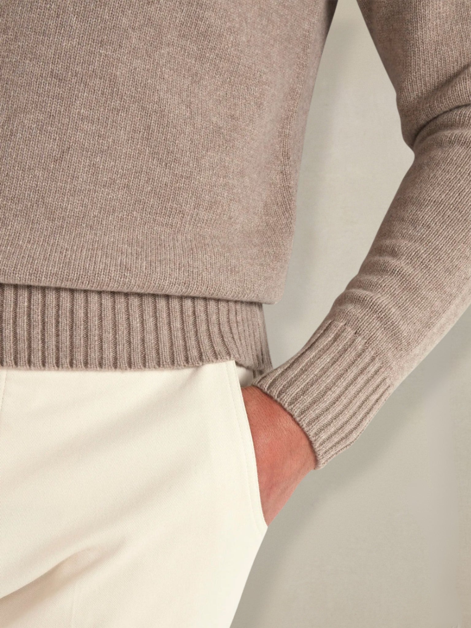 Main 100% Cashmere. Trim 97% Cashmere, 2% Nylon, 1% Elastane.